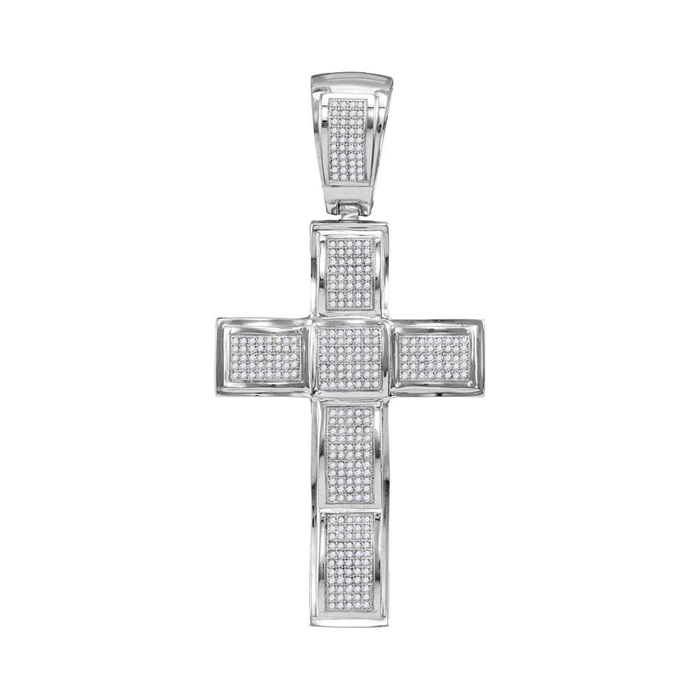 REF-109K4W- SKU: GD57976 ---- 1.08 CTW Mens Diamond Roman Cross Charm Pendant 10KT White Gold