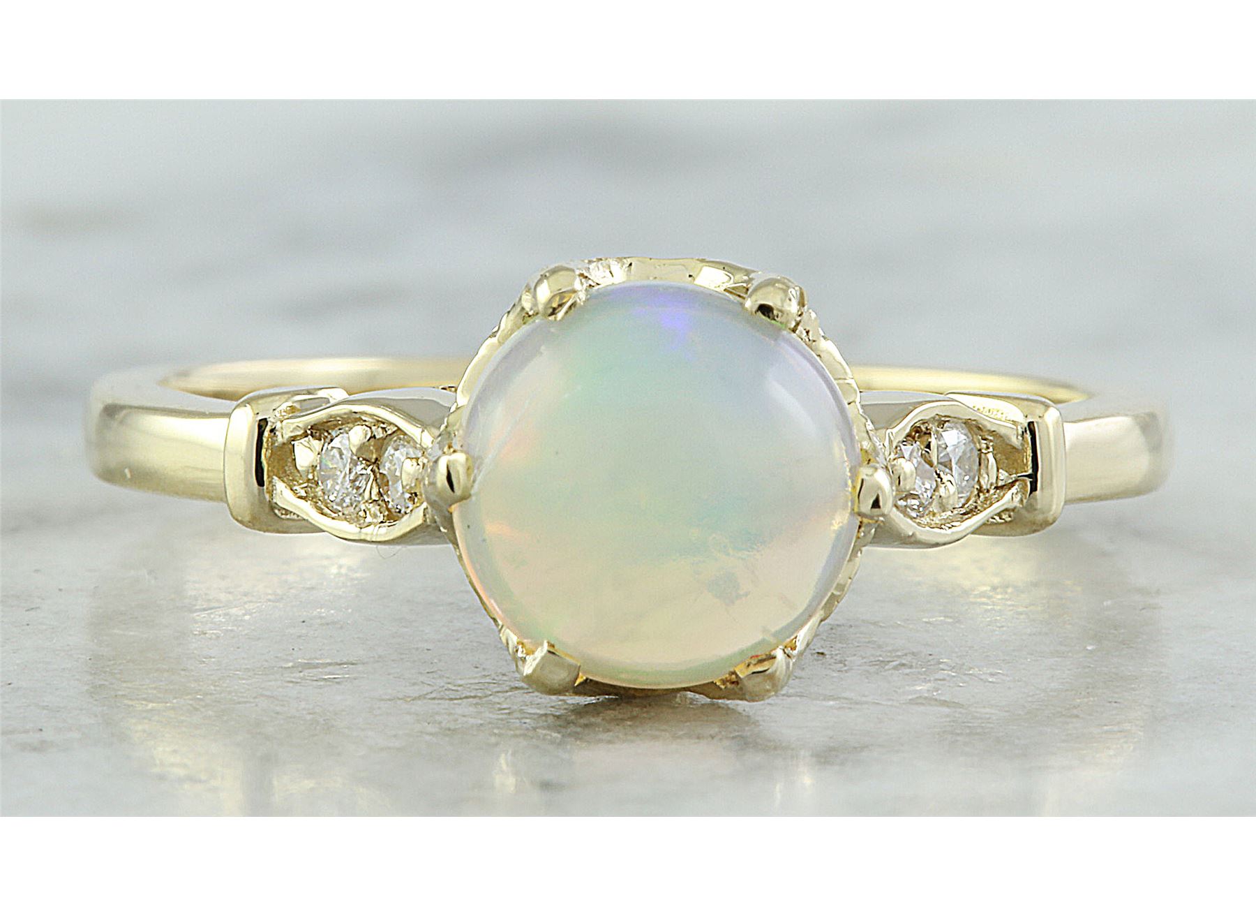 1.08 CTW Opal 14K Yellow Gold Diamond Ring
