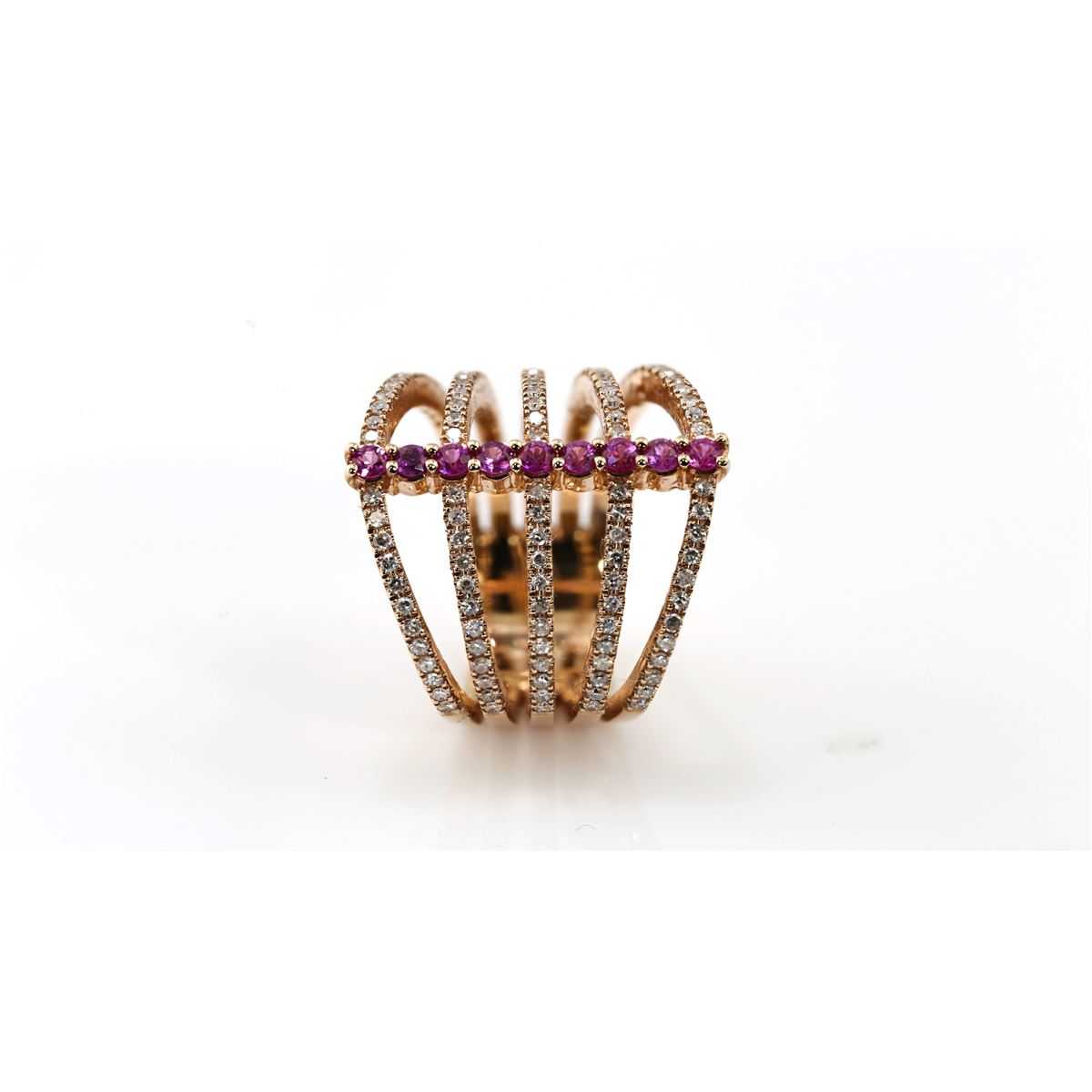 14K GOLD DIAMOND DESIGNER RING/Diamond Count 1:/Diamond Total Carat :0.65/Diamond Color & Clarity:G-H /SI1-SI3/Diamond Count 2:/Diamond 2 CTW:/Diamond Count 3:/Gemstone Count 1:9/Gemstone CTW:0.43/Gemstone Dimension:/Gemstone Shape:Round Ruby /Gemstone Count 2:/Gemstone Shape:/Ring Dimension:/Metal Type 1:14k Rose Gold :Gram Weight:8.69/Metal Type 2:/ Weight Gram:/Gross Weight :9.13/Ring Size:7