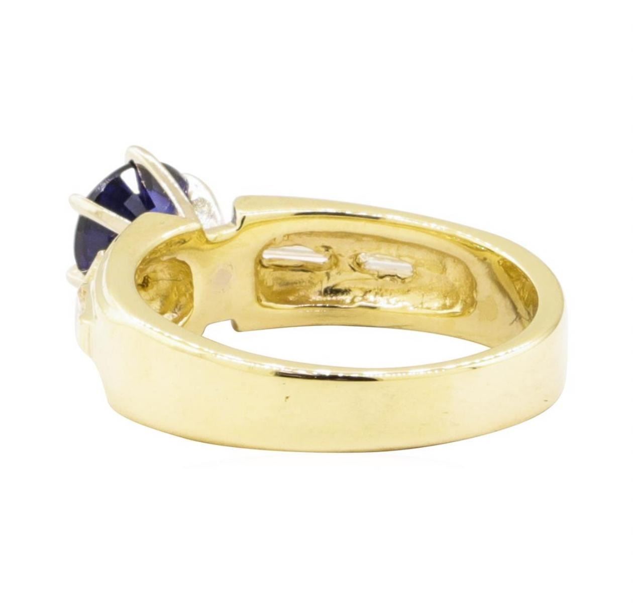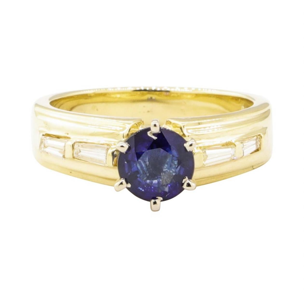 One ring featuring: 14KT yellow gold weighing 5.0 grams containing one sapphire weighing 0.96ct and diamonds weighing 0.12ctw.