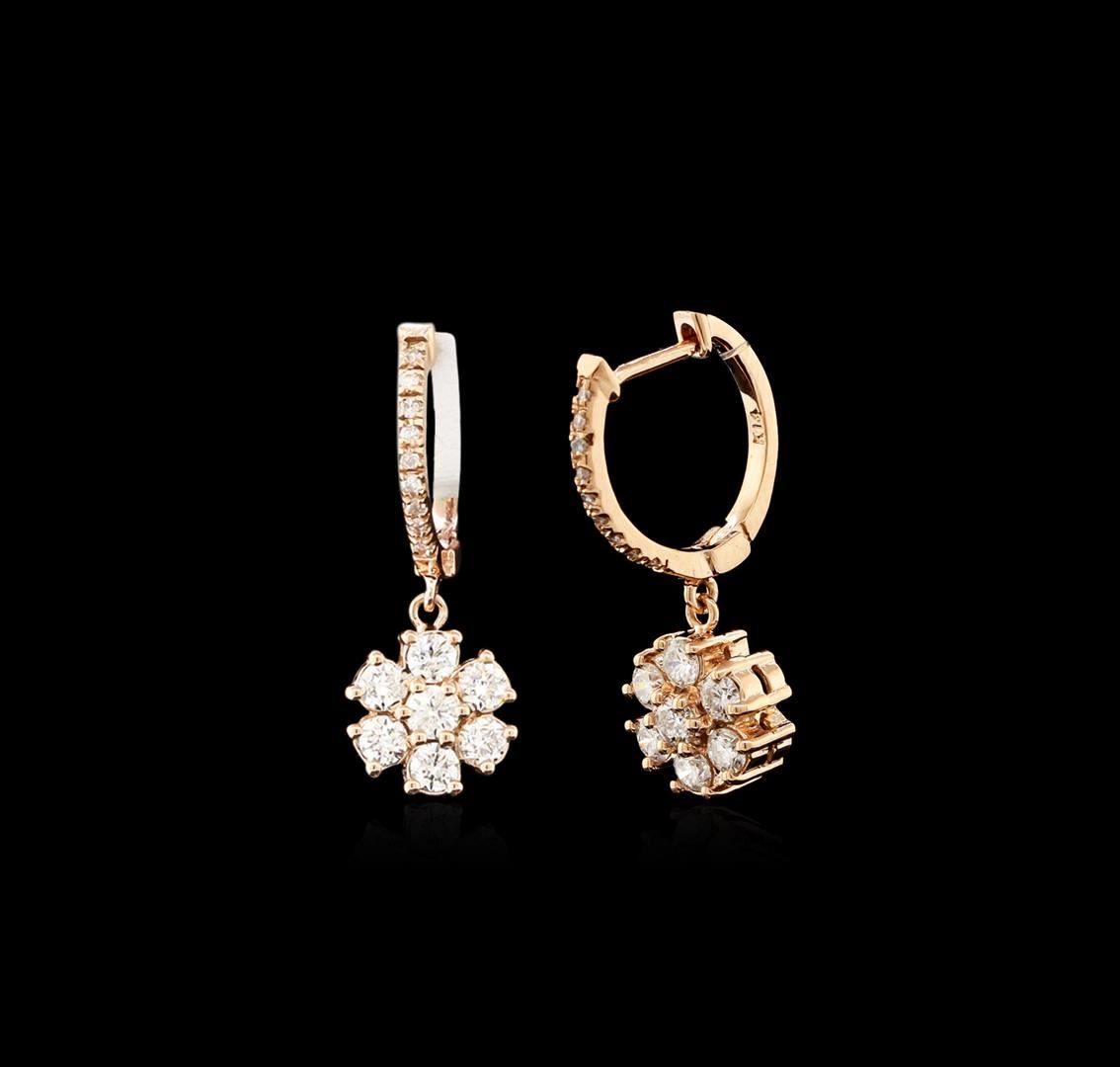 One pair of earrings featuring: 14KT rose gold weighing 4.37 grams containing 32 diamonds with a total weight of 1.08ct.
