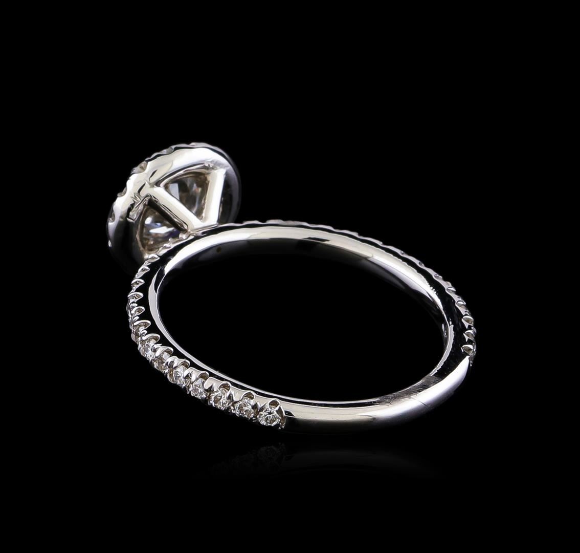 One electronically tested 14KT white gold lady's cast wedding ring with a halo with a bright polish finish. The featured lady's ring has a shank measuring 1.92 millimeters in width. Identified with markings of "14K". Condition is new, good workmanship. Containing: One prong set round brilliant cut diamond, measuring 5.49 - 5.41 x 3.49mm (depth est.) approximate weight of 0.64ct. Graded in the setting. Clarity: SI-2. Color: I. Cut Good Forty-Six prong set round brilliant cut diamonds, measuring 1.40 - 1.35 x 0.84mm (depth est.) approximate total weight of 46 Stones = 0.44ct. Graded in the setting. Clarity: VS-2 to SI-2. Color: G - Good. Total Weight of Diamonds 1.08ct. Total Weight of Ring 3.00gm. GAS Appraised at $6,265.00.