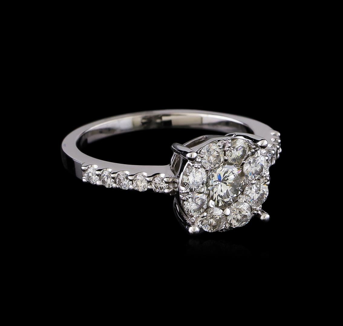 One electronically tested 14KT white gold lady's cast wedding ring with a cathedral basket halo with a bright polish finish. The featured lady's ring has a shank measuring 1.68 millimeters in width. Identified with markings of "K14". Condition is new, good workmanship. Containing: One prong set round brilliant cut diamond, measuring 4.70 - 4.60 x 3.03mm (depth est.) approximate weight of 0.40ct. Graded in the setting. Clarity: I-1. Color: I. Cut Good Ten prong set round brilliant cut diamonds, measuring 1.70 - 1.65 x 1.04mm (depth est.) approximate total weight of 10 Stones = 0.18ct. Graded in the setting. Clarity: VS-2 to SI-2. Color: G -  Good Eight prong set round brilliant cut diamonds, measuring 2.60 - 2.50 x 1.59mm (depth est.) approximate total weight of 8 Stones = 0.50ct. Graded in the setting. Clarity: SI-1 to SI-2. Color: G -  Good. Total Weight of Diamonds 1.08ct. Total Weight of Ring 3.70gm. GAS Appraised at $4,330.00.