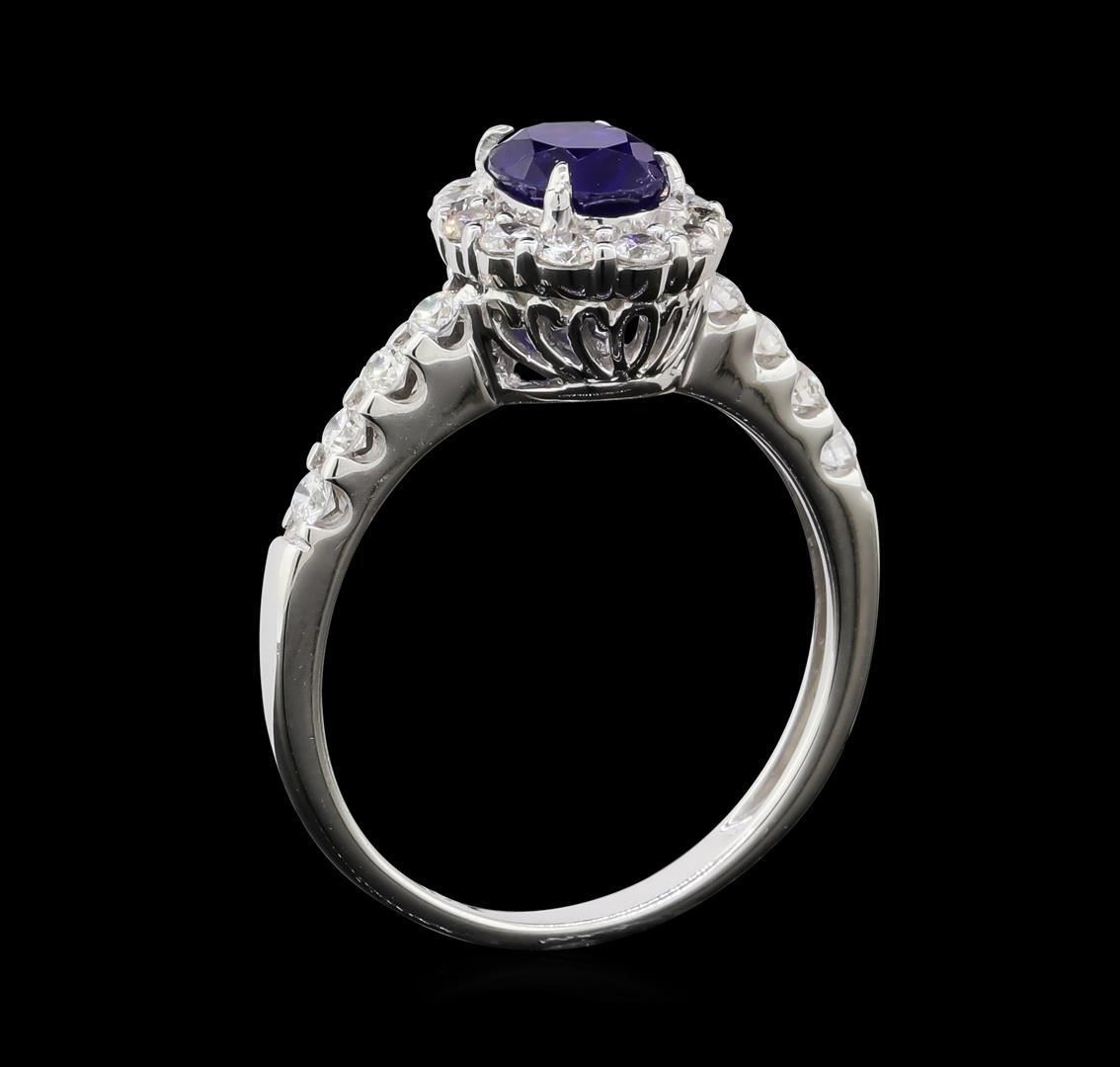 One ring featuring: 14KT white gold weighing 3.00 grams containing one sapphire weighing 1.08ct and diamonds weighing 0.63ctw.