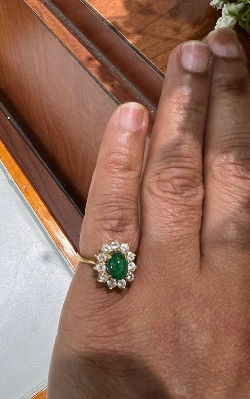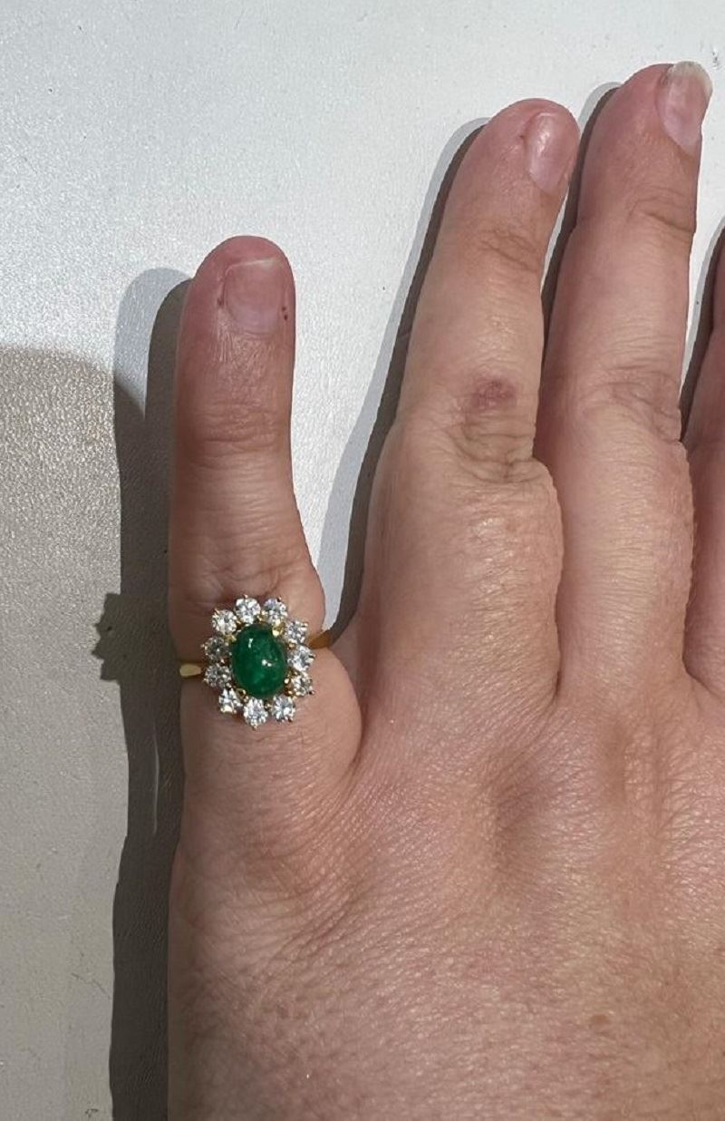 18K Yellow Gold Ring / 1.08ct Natural Emerald / 0.77ct Diamonds #AV9431929