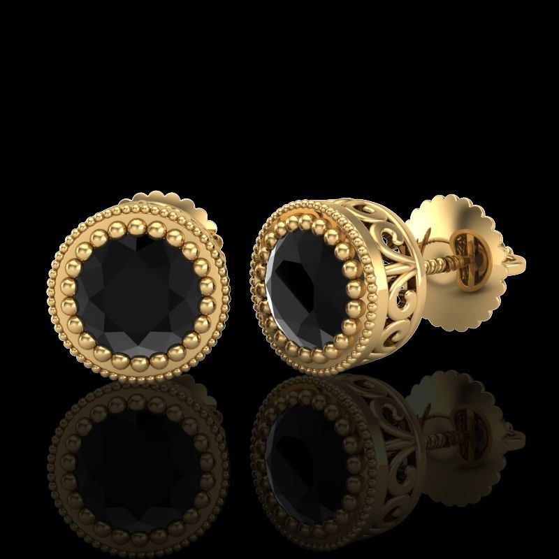 1.09 CTW Fancy Black Diamond Solitaire Art Deco Stud Earrings 18K Yellow Gold ---- Luxury Designer Brand Earring Appraised Retail Price at $3,850 ---- SKU Number US37480 18k Yellow gold Earring Size is Larger, Earring measuring approx. Uniform, weighing in total approx. 4.7 grams. Made in the USA and is stamped 18k, Main stone 1.09 carat total weight containing 2 pieces of Black Opaque color with VS quality Round shape cut Diamond , Stone #2 carat total weight containing pieces of color with quality shape cut