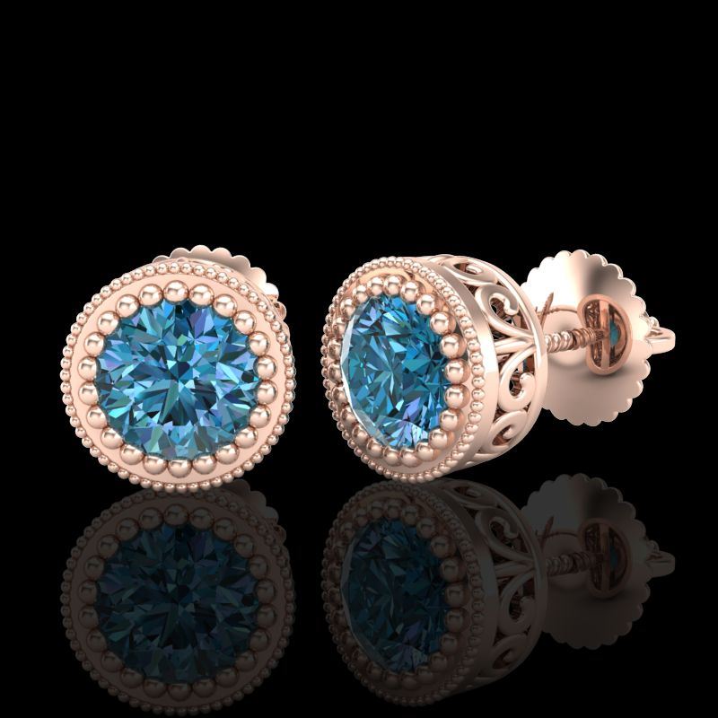 REF-123W6F -37482 ---- 1.09 CTW Fancy Intense Blue Diamond Art Deco Stud Earrings 18K Rose Gold ---- Luxury Designer Brand Earring Appraised at $8,150 Certificate Number US37482 18k Rose gold, Earring Size is Larger, Earring measuring approx. Uniform, weighing in total approx. 2.3 grams. Made in the USA and is stamped 18k, Main stone 1.09 carat total weight containing 2 pieces of Intense Fancy Blue color with SI quality Round shape cut Diamond , Stone #2 carat total weight containing pieces of color with quality shape cut