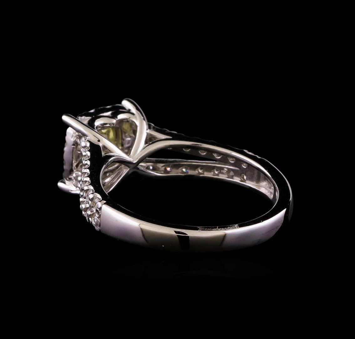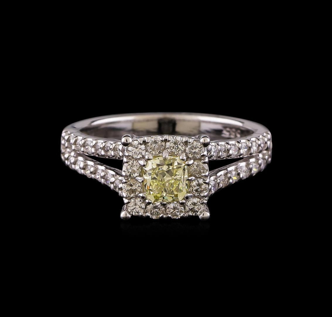 One electronically tested 14KT white gold lady's cast wedding ring with a split shank halo with a bright polish finish. The featured lady's ring has a shank measuring 2.47 millimeters wide. Identified with markings of '585'. Condition is new, good workmanship. Containing: One prong set cushion cut diamond, measuring 4.50 x 4.45 x 3.00mm (depth est.) approximate weight of 0.51ct. Graded in the setting. Clarity VS-1 Cut Very Good Twelve prong set round brilliant cut diamonds, measuring 1.85 - 1.75 x 1.10mm (depth est.) approximate total weight of 12 Stones = 0.26ct. Graded in the setting. Clarity SI-1 to SI-2. Color: H - I Cut Good Thirty-Two prong set round brilliant cut diamonds, measuring 1.40 - 1.35 x 0.86mm (depth est.) approximate total weight of 32 Stones = 0.32ct. Graded in the setting. Clarity SI-1 to I-1. Color: H - I Cut Good. Total Weight of Diamonds 1.09ct.. Total Weight of Ring 4.00gm. GAS Appraised.