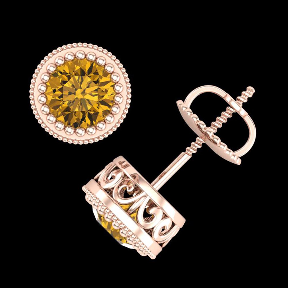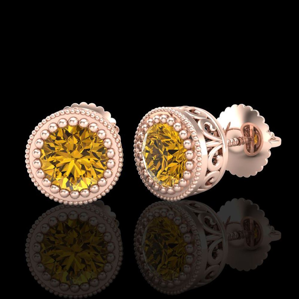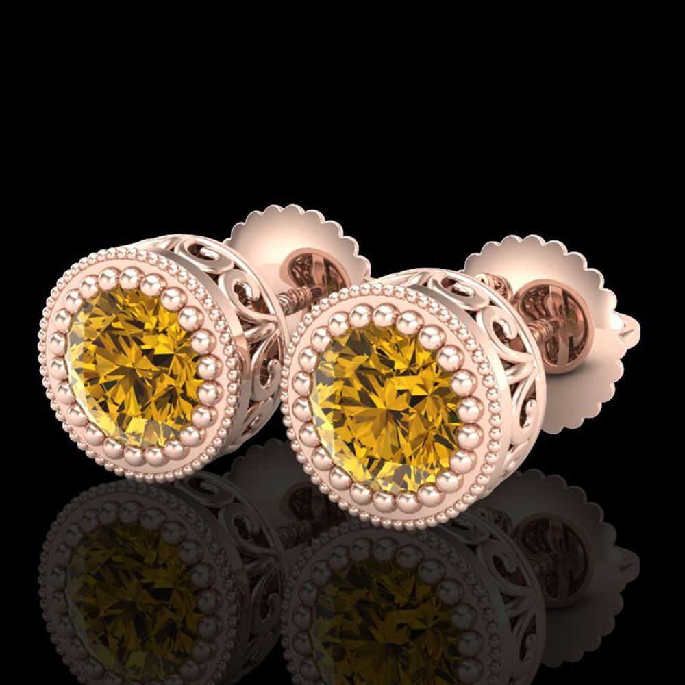 SKU: 37484 ---- 1.09 ctw Intense Fancy Yellow Diamond Art Deco Earrings 18k Rose Gold