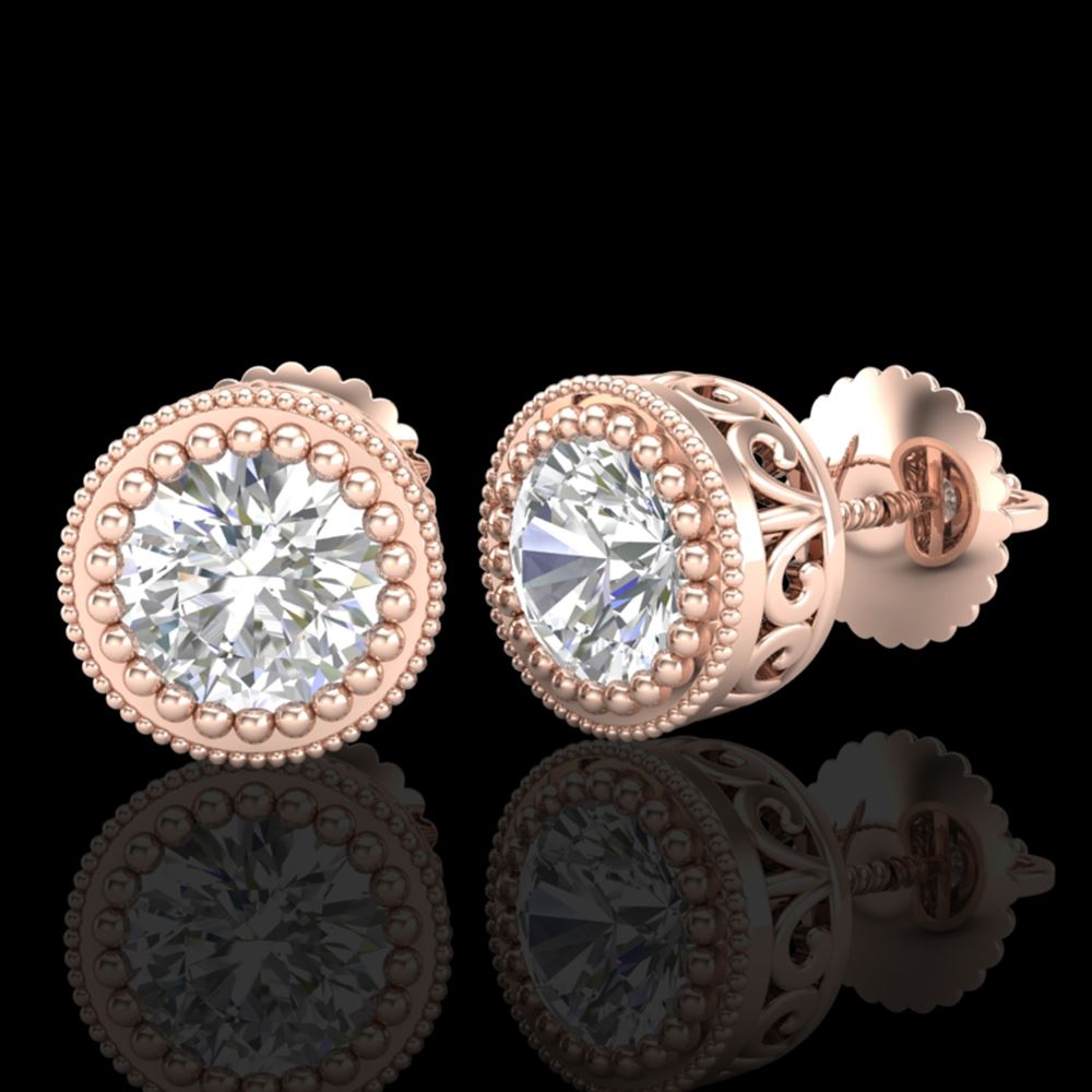 REF-202N8F - SKU: 36888 ---- 1.09 ctw VS/SI Diamond Solitaire Art Deco Stud Earrings 18k Rose Gold