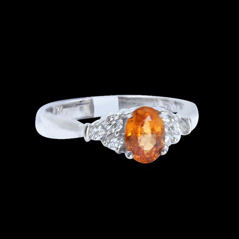 14K WHITE GOLD NATURAL SPESSARTITE RING :2.54GRAM /SPESSARTITE :1.09CT/ DIAMOND RD :0.21CT/#GVR1270