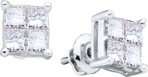 REF-159X8T ---- 1.0CT Diamond Invisible 14KT Earrings White Gold - SKU: 18563