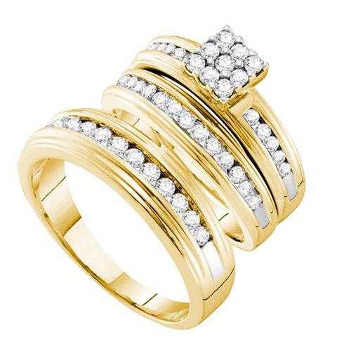 REF-186L2W ---- 1.0CT Diamond Trio Set 14KT Ring Yellow Gold - SKU: 46673