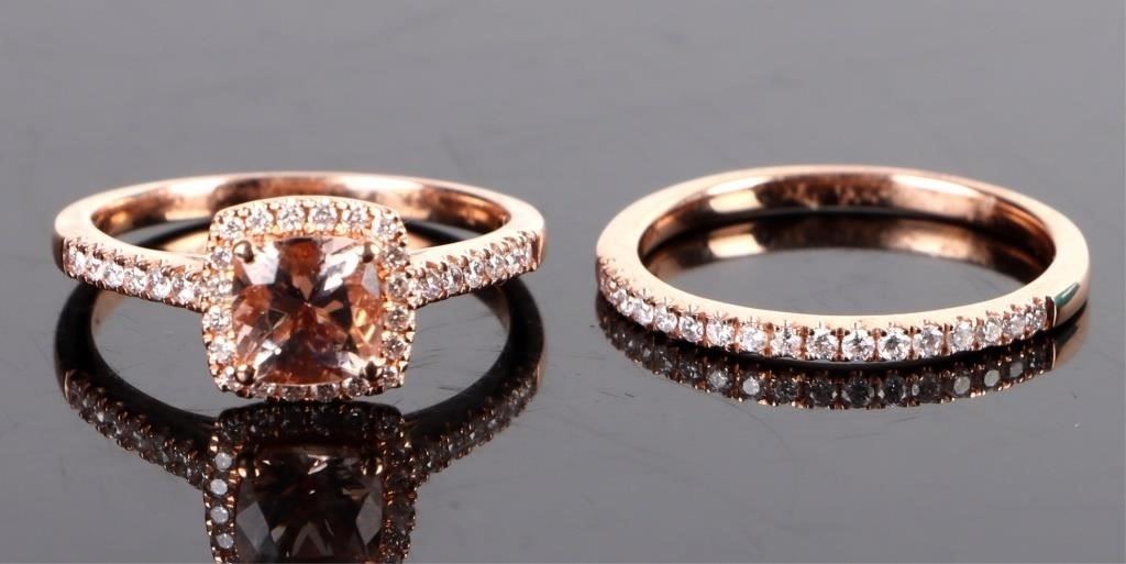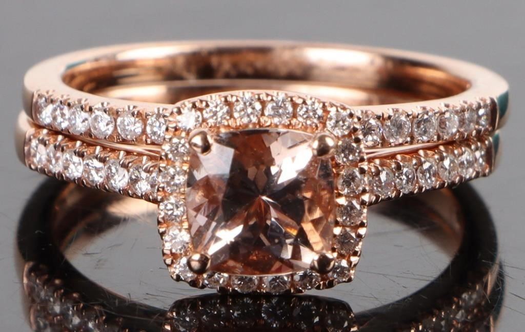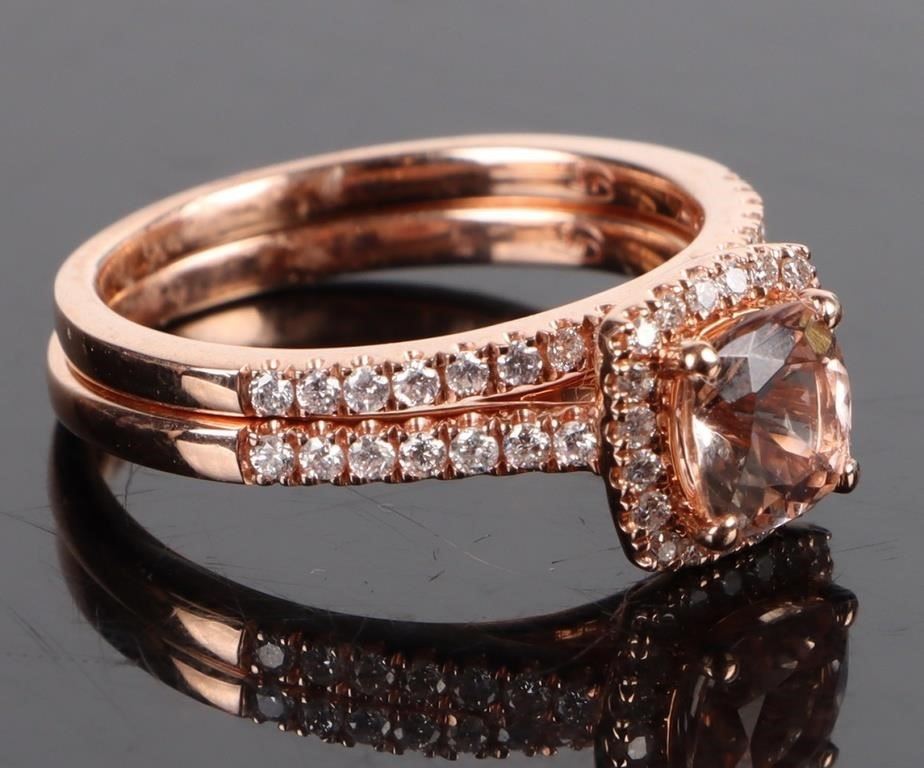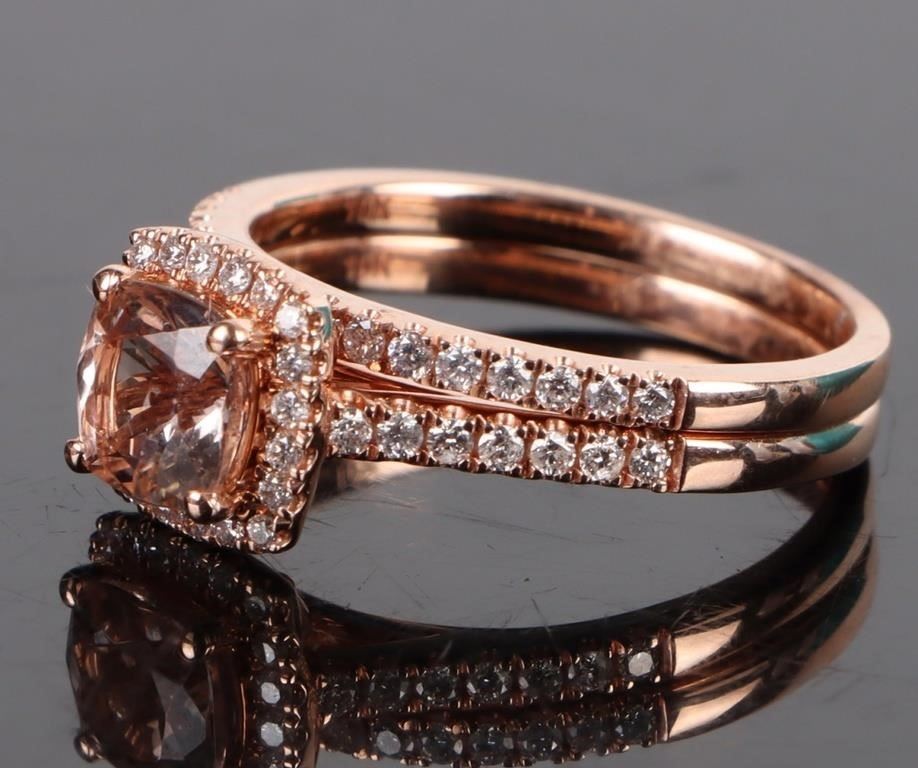 1.0ct morganite diamond 10k rose gold ladies bridal set with fifty-one 0.01ct round diamonds - 0.51CTW.