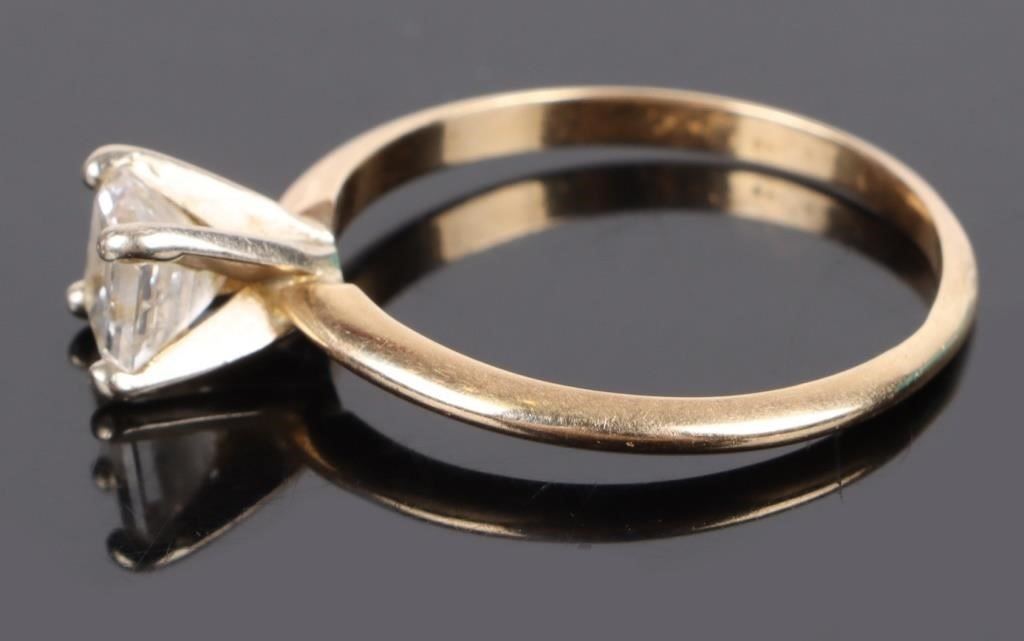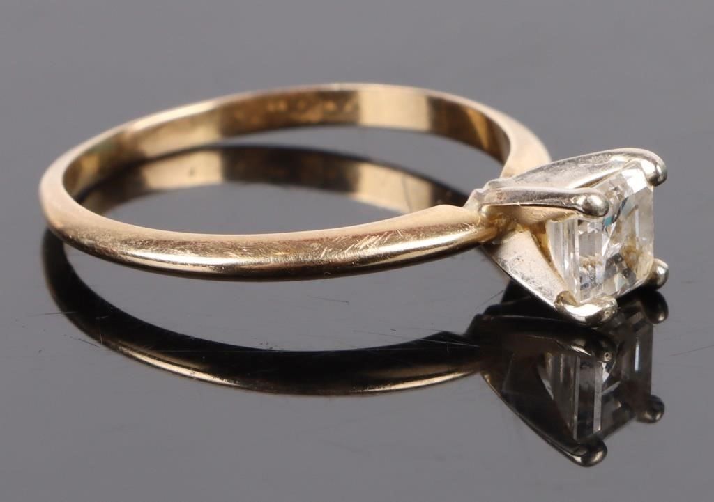 1.0ct princess-cut 14k yellow gold solitaire diamond ring.