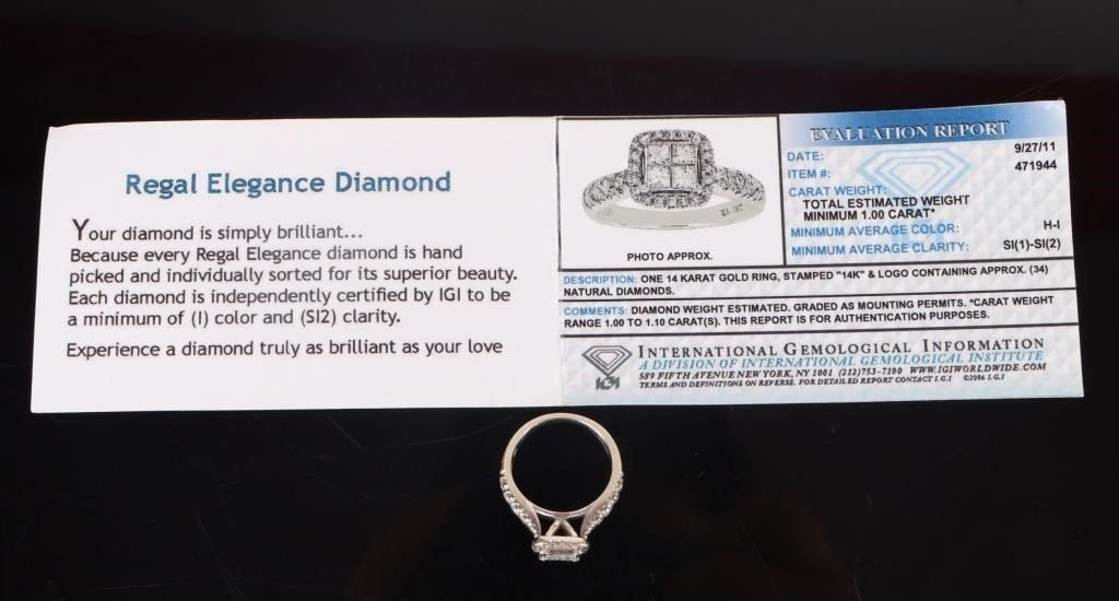 1.0CTW diamond 14k white gold ladies ring with SI1-SI2 with a certification. Color H-I.