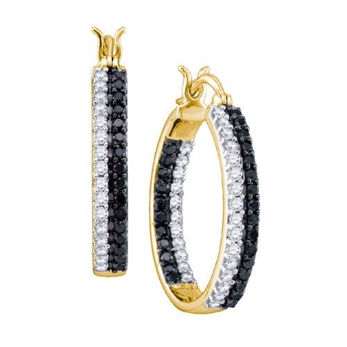 REF-59N9X ---- 1.0CTW White and Black Diamond Hoops 10KT Earrings Yellow Gold - SKU: GD 74455
