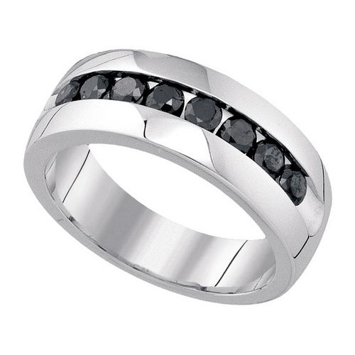 REF-79L9W ---- 1.0CTW White and Black Diamond Machine-Set 10KT Ring White Gold - SKU: 85611