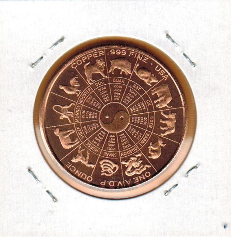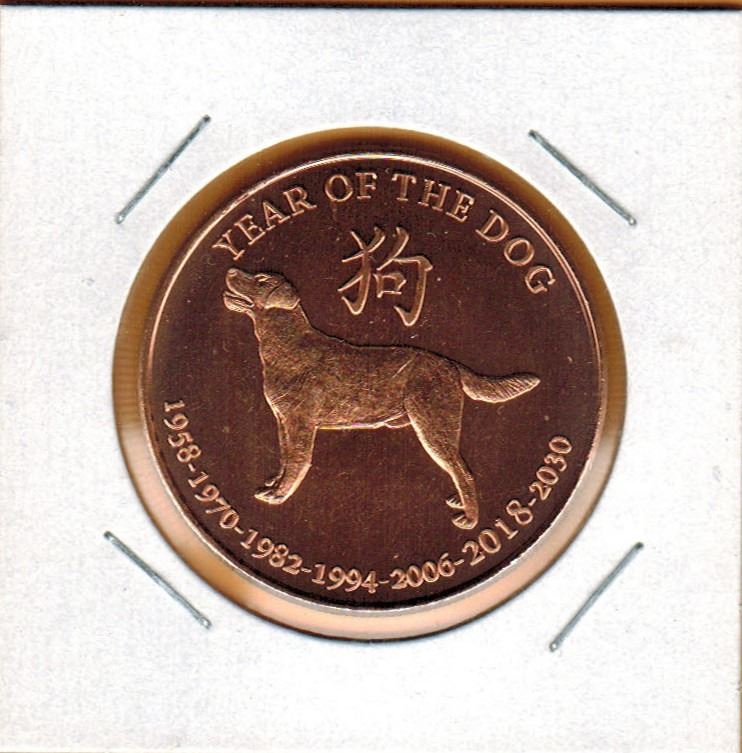 1 0UNCE COPPER - .999 FINE - CHINESE LUNAR CALENDAR - YEAR of the DOG