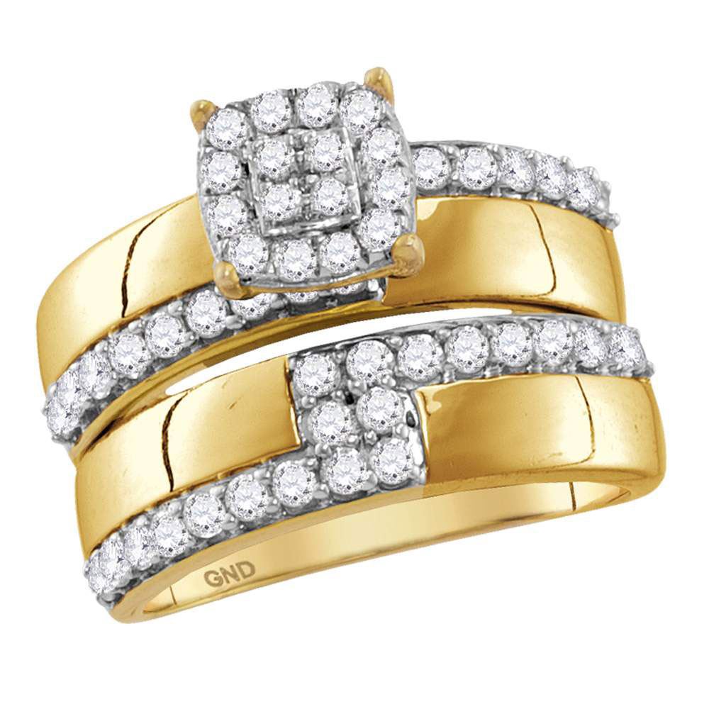 REF-120Y3X ---- 1 & 1/2 CTW His & Hers Round Diamond Cluster Matching Bridal Wedding Ring 14kt Yellow Gold