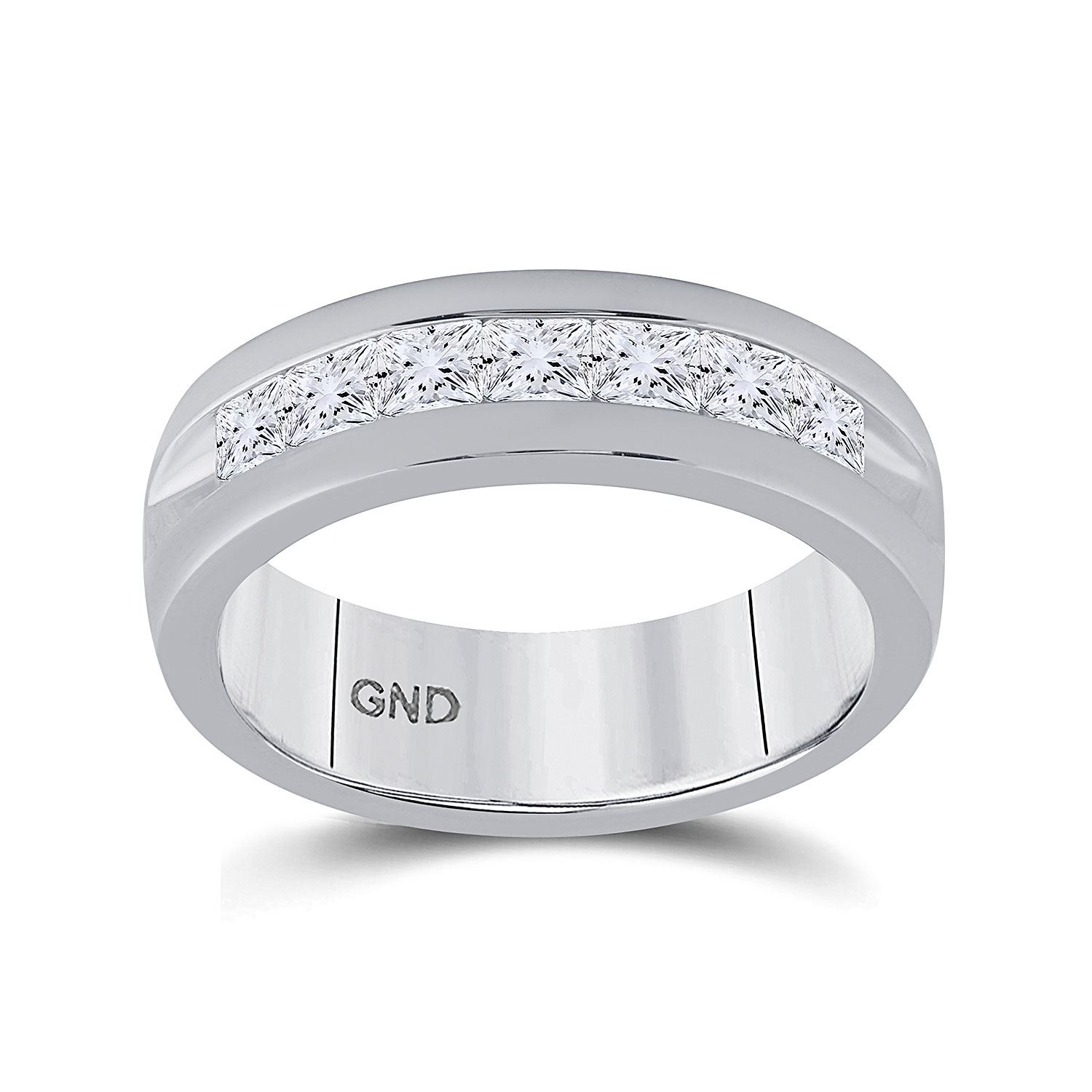 14kt White Gold Mens Machine Set Princess Diamond Wedding Channel Band Ring 1-1/2 Cttw