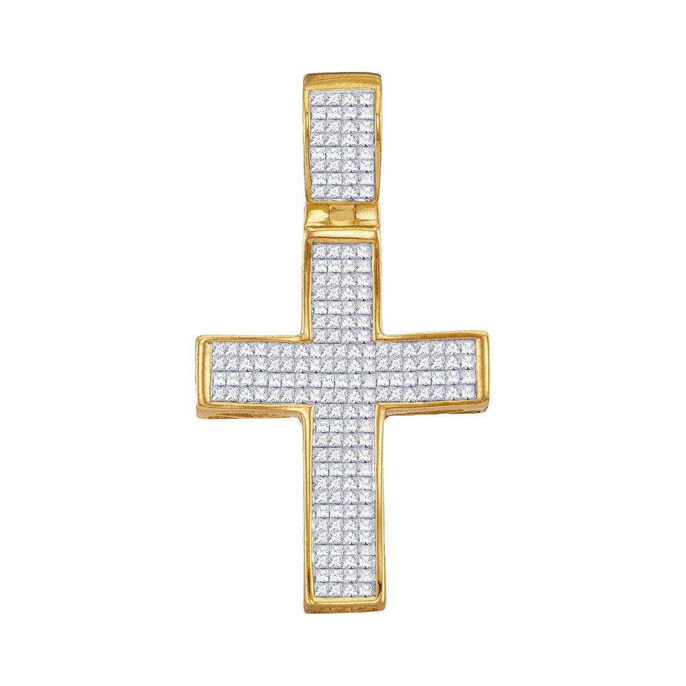10kt Yellow Gold Mens Princess Diamond Cross Charm Pendant 1-1/2 Cttw