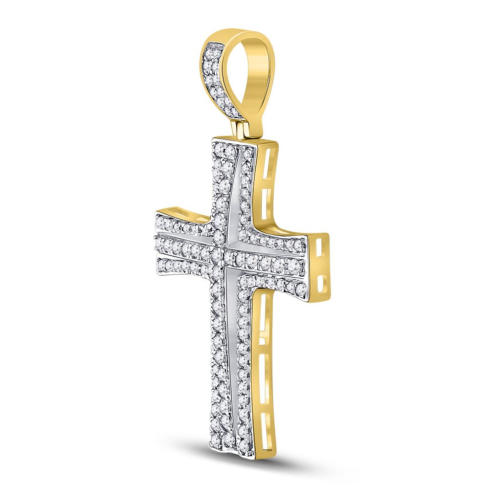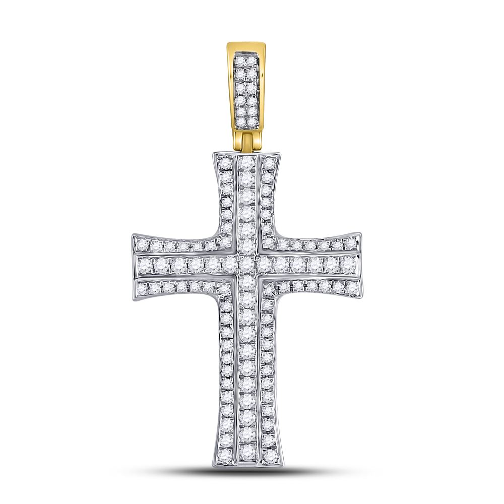 REF-120X3T ---- 1 & 1/2 CTW Mens Round Diamond Cross Charm Pendant 14kt Yellow Gold