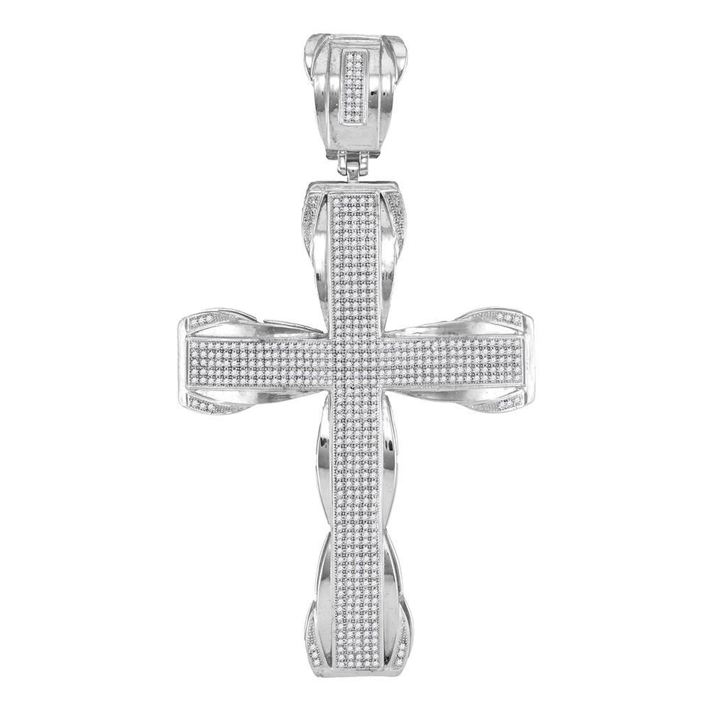 REF-117F5M ---- 1 & 1/2 CTW Mens Round Diamond Flared Roman Cross Charm Pendant 10kt White Gold