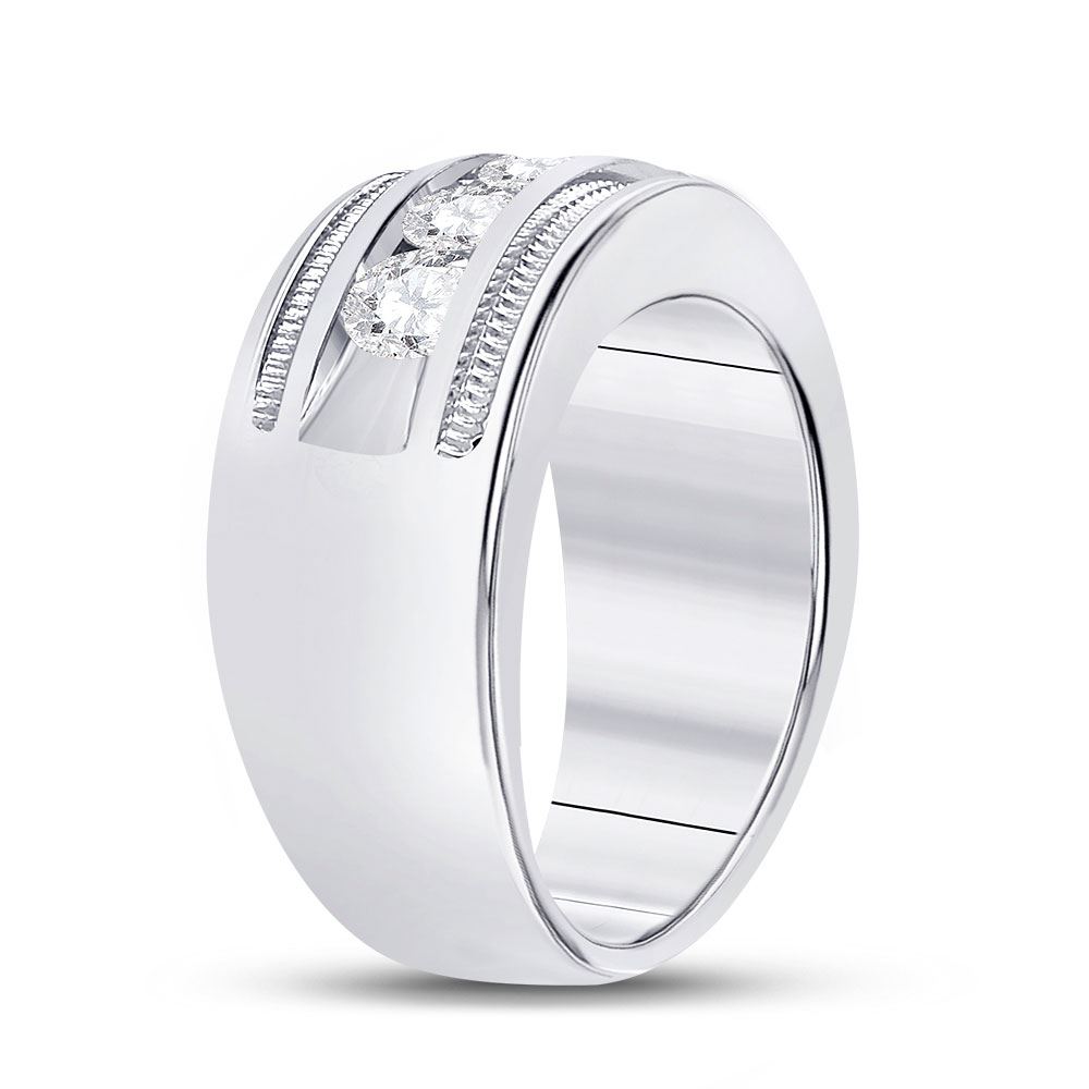 REF-281H9W ---- 1 & 1/2 CTW Mens Round Diamond Single Row 5-Stone Wedding Ring 14kt White Gold