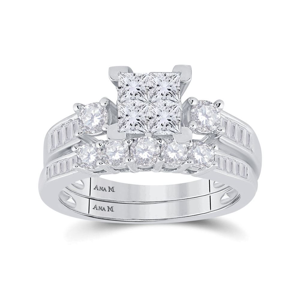 REF-173M9F - 1 & 1/2 CTW Princess Diamond Bridal Wedding Ring 14kt White Gold - REF-173M9F