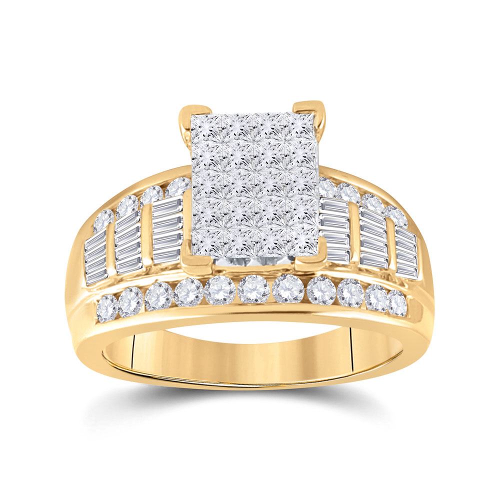 REF-105M7F - 1 & 1/2 CTW Princess Diamond Cluster Bridal Wedding Engagement Ring 10kt Yellow Gold - REF-105M7F