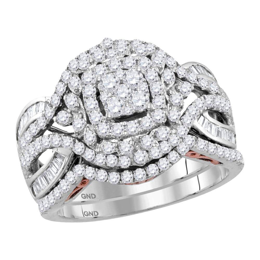 14kt Two-tone Gold Womens Round Diamond Bridal Wedding Engagement Ring Band Set 1-1/2 Cttw