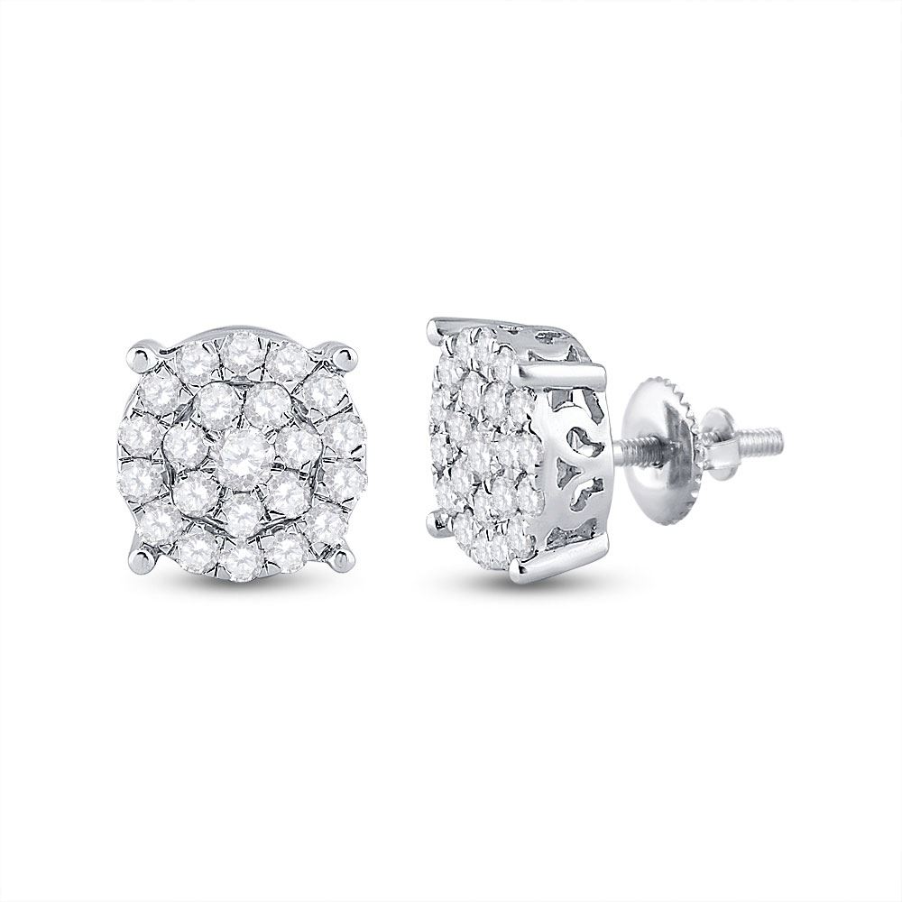 REF-77X9T ---- 1 & 1/2 CTW Round Diamond Cluster Earrings 10kt White Gold