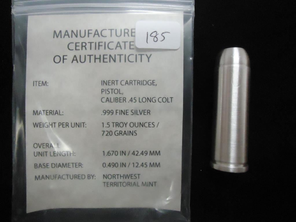 1 1/2 OZ. .999 FINE SILVER .45 CALIBER COLT BULLET