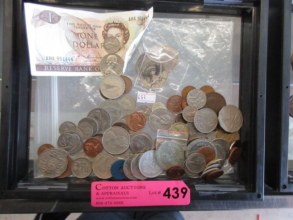 Features 1975 Grey Cup Dollars (3) and Red Lion Casino tokens.
