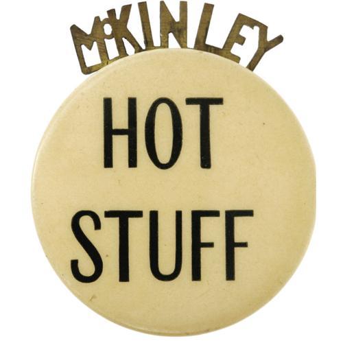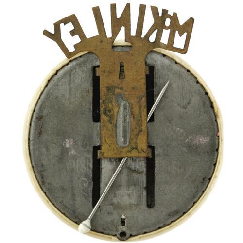 <B>Rare 1 1/2" William McKinley Mechanical Celluloid Button.</B></I> Brass letters spelling out "McKinley" pop up from behind. Great condition, and hard to find this item or its Bryan mate so. <I>From the Norman Loewenstern Collection.</B></I>