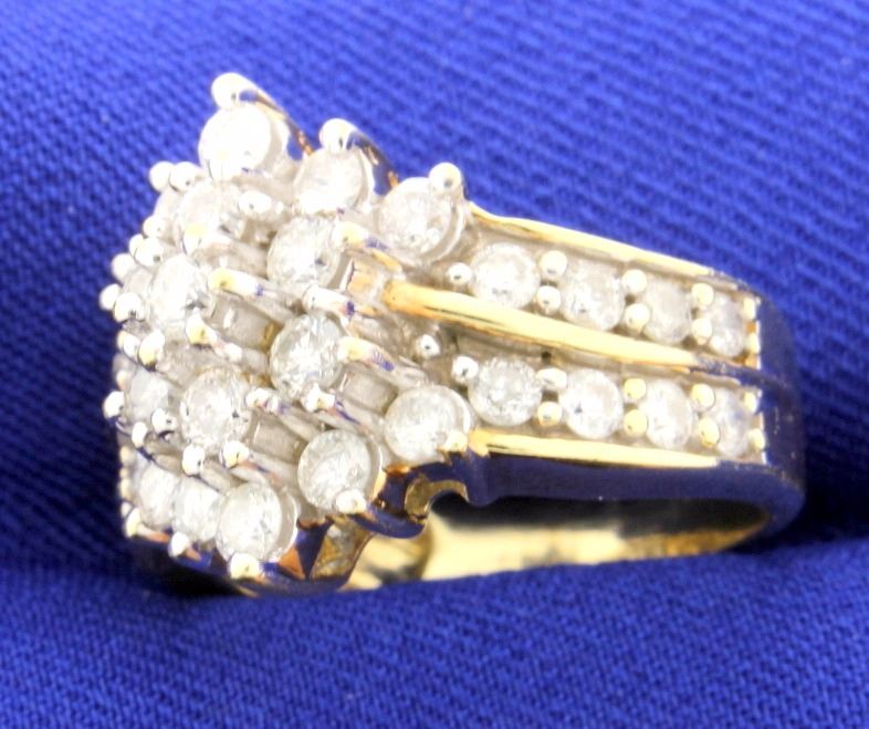 This cluster like 10k yellow gold band style ring sparkles with 1 1/2 carats of diamonds! The diamonds clarity is I1 and their colors include H-I-J. This ring sparkles and the diamonds face up very white! Size 8 7.8g
