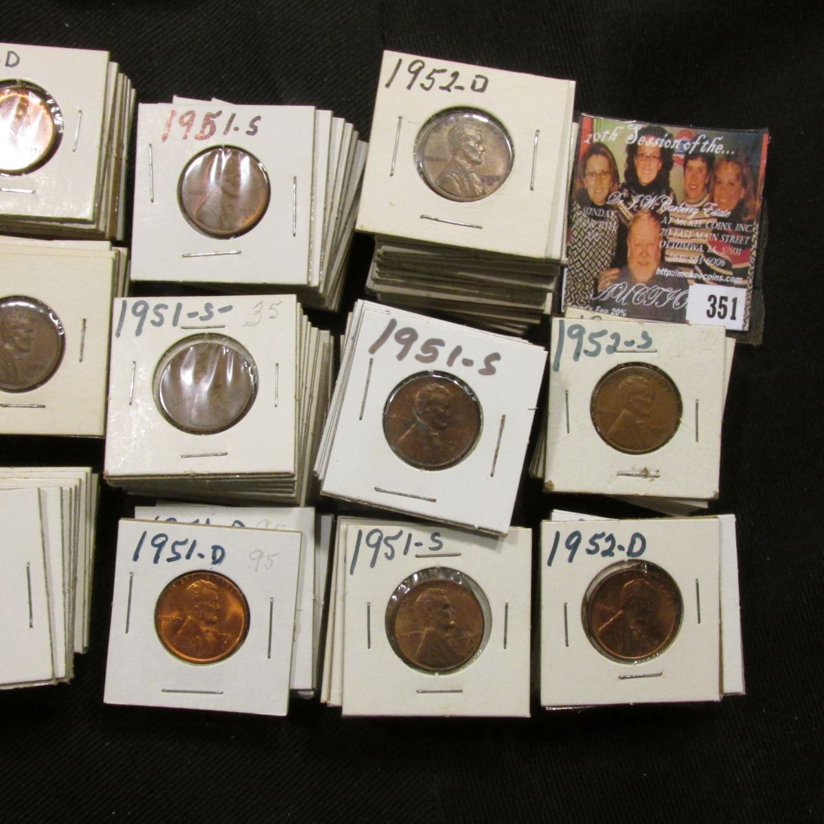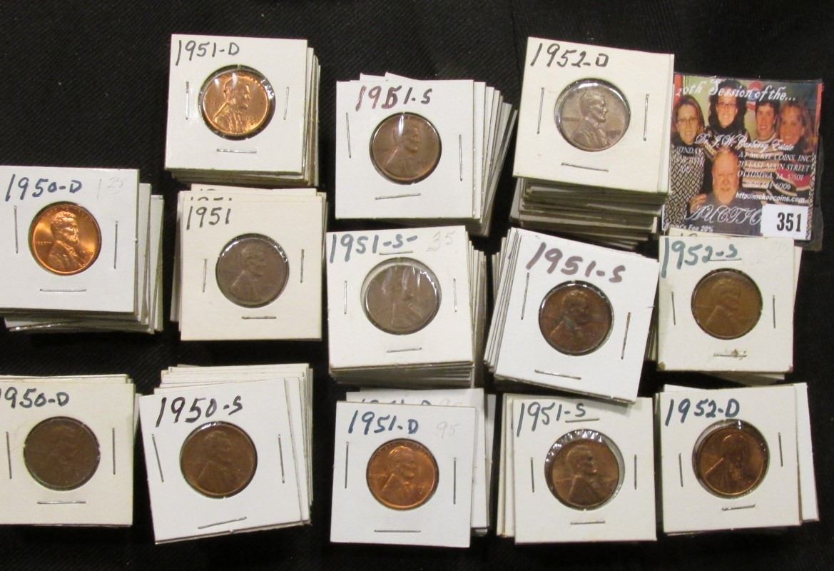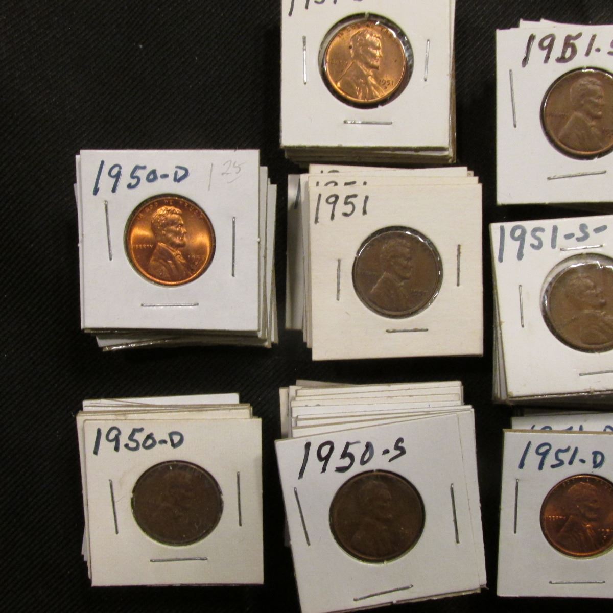 1 1/2" x 1 1/2" double row box of 1950 D to 52 D Lincoln Cents in holders. Box measures 3 1/8" x 6 1/4". Includes several BU Coins. The box is full.