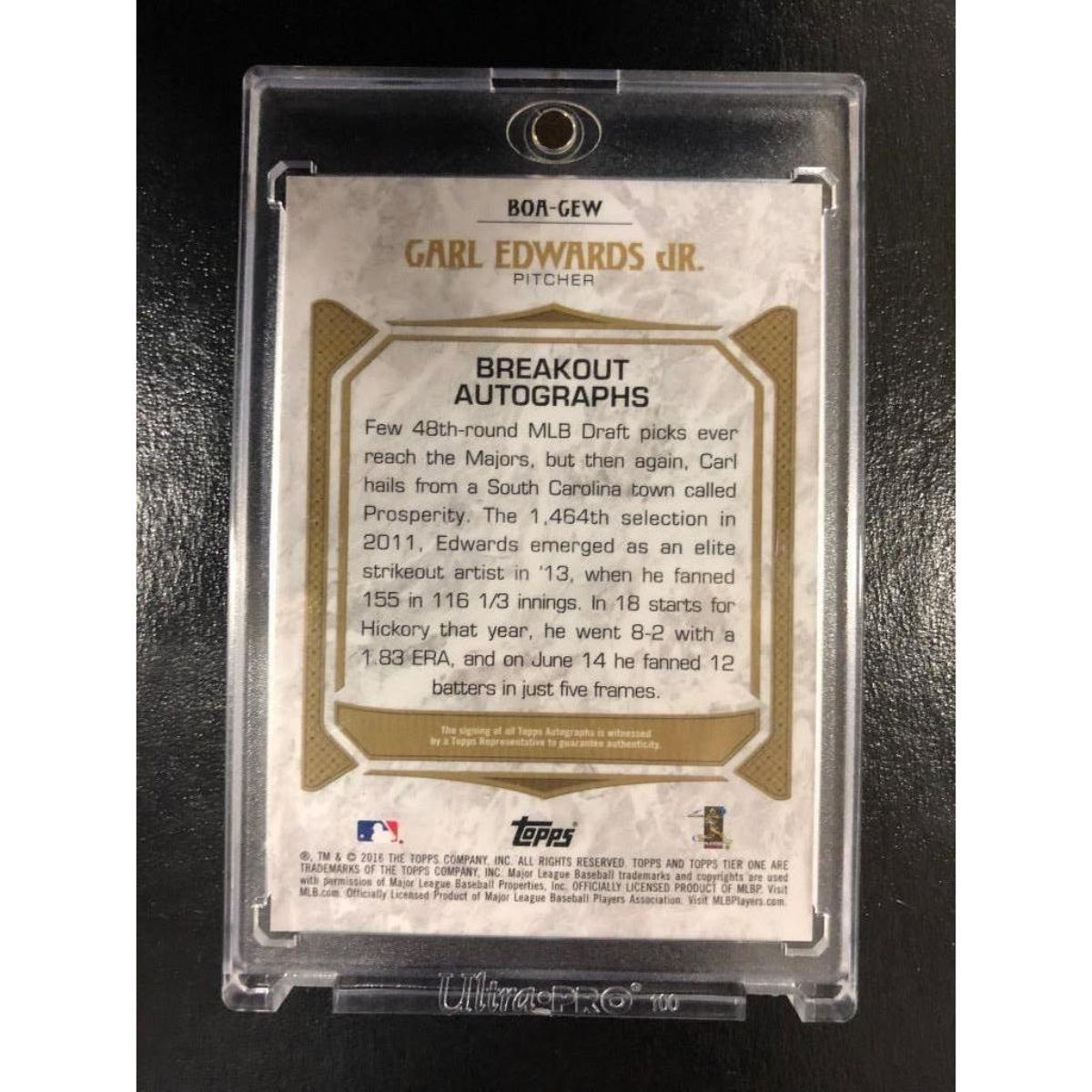 1/1 2016 Topps Tier One Breakout Autographs Carl Edwards Jr. High Grade Baseball Card. Very Rare 1 of 1, High Grade Card. View Photos For Further Details.Â