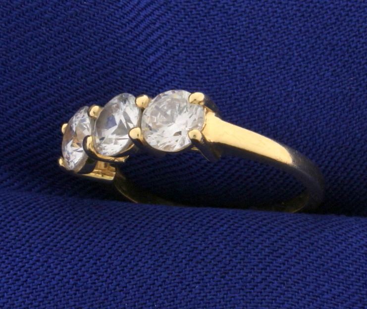 In 14k yellow gold, containing 3 cz gemstones with lots of sparkle and brilliance. Size 5. 2.7g