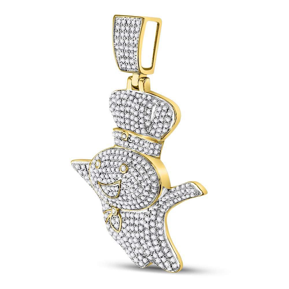 10kt Yellow Gold Mens Round Diamond Doughboy Charm Pendant 1-1/3 Cttw