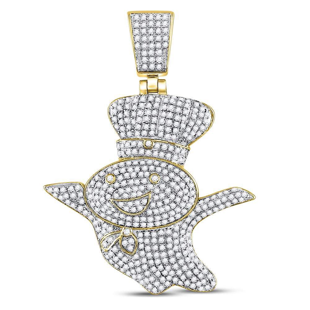 REF-81M7F - 1 & 1/3 CTW Mens Round Diamond Doughboy Charm Pendant 10kt Yellow Gold - REF-81M7F