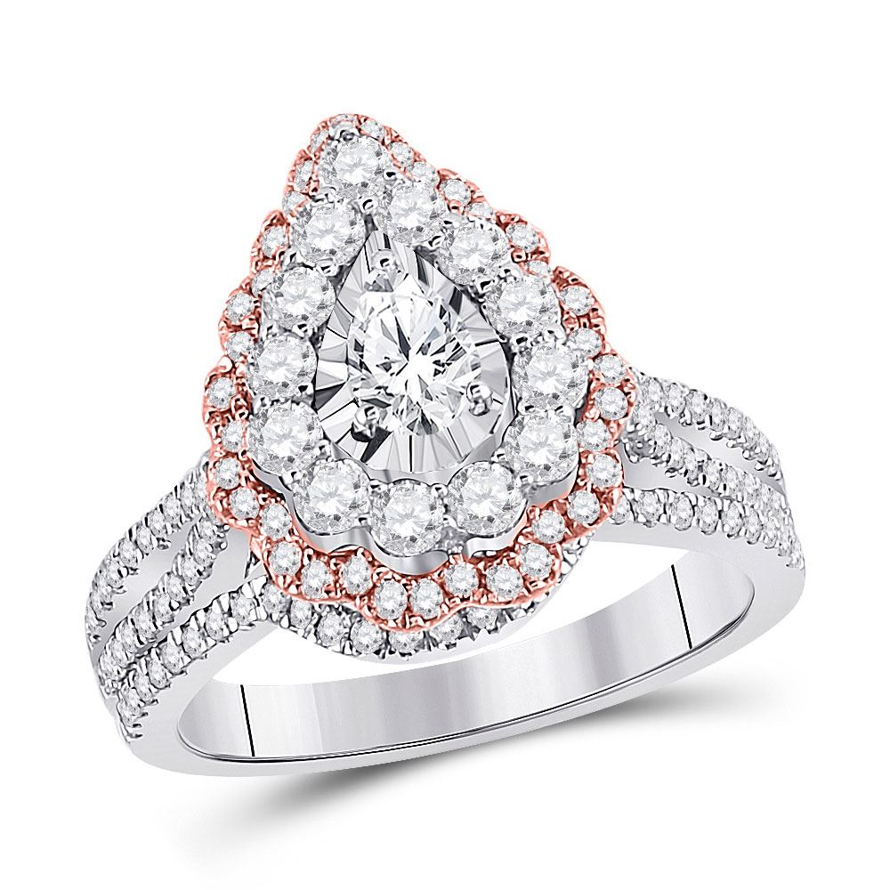 REF-170X5T - 1 & 1/3 CTW Pear Diamond Solitaire Bridal Wedding Engagement Ring 14kt Two-tone Gold - REF-170X5T