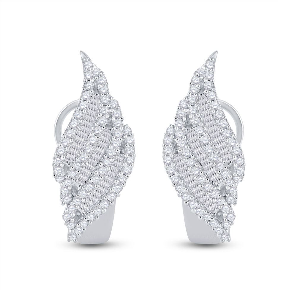14kt White Gold Womens Round Baguette Diamond Half J Hoop French-clip Earrings 1-1/3 Cttw