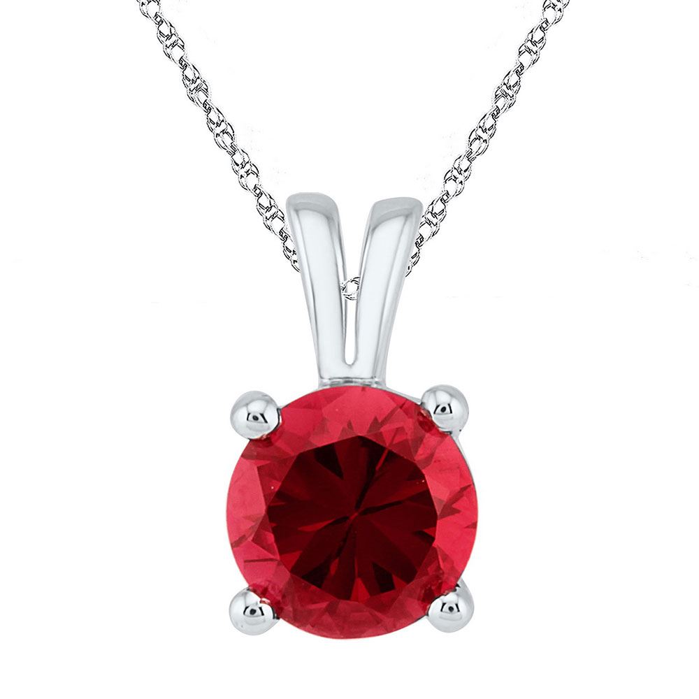 10kt White Gold Womens Round Lab-Created Ruby Solitaire Pendant 1-1/3 Cttw