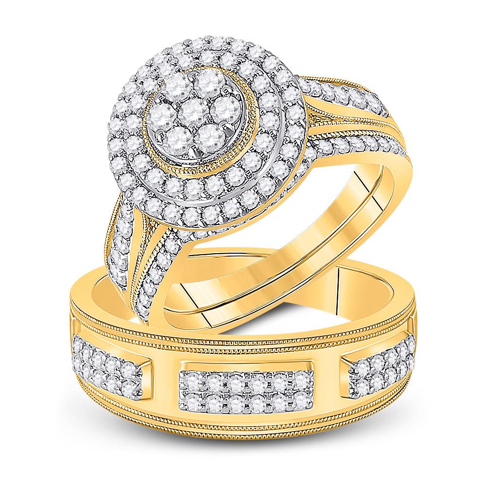 REF-119A5M - 1 & 1/4 CTW His Hers Round Diamond Cluster Matching Wedding Set 10kt Yellow Gold - REF-119A5M