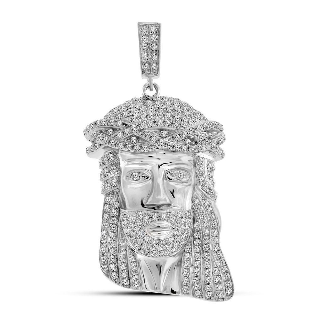 10kt White Gold Mens Round Diamond Jesus Christ Face Charm Pendant 1-1/4 Cttw