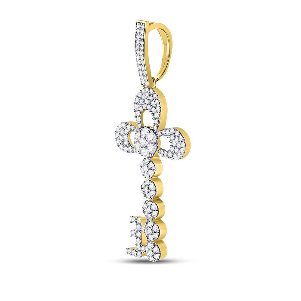 10kt Yellow Gold Mens Round Diamond Key Charm Pendant 1-1/4 Cttw