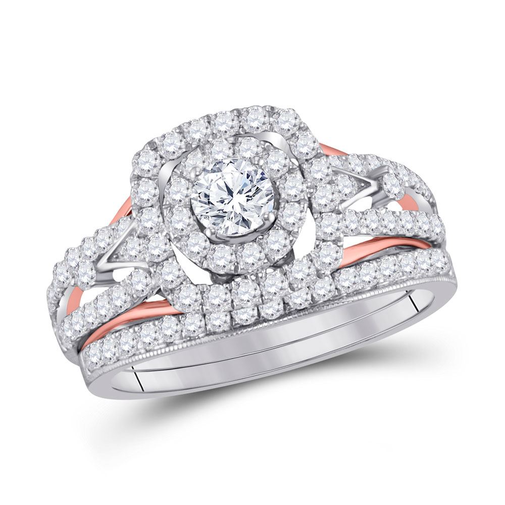 14kt Two-tone Gold Womens Round Diamond Bridal Wedding Engagement Ring Band Set 1-1/5 Cttw