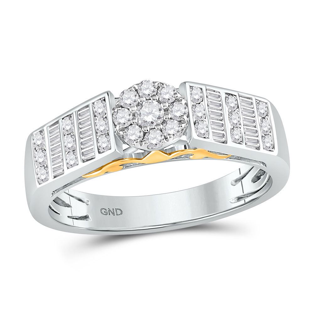 14kt Two-tone Gold His & Hers Round Diamond Solitaire Matching Bridal Wedding Ring Band Set 1-1/5 Cttw